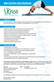 unter info@physiotherapie-sk.de zur Verfügung.